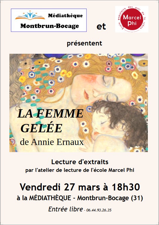 lecture d’extraits de la femme gelée/ Médiathèque Vendredi 7 mars à 18h 30- Entrée libre